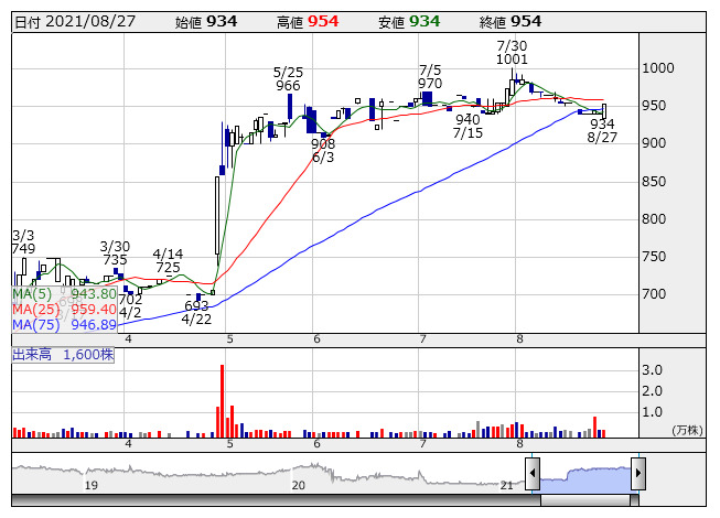 <9055> アルプス物流 東1 21/ 9 2300 2800 21.7 8/25