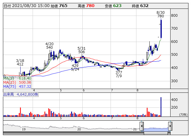 38. <7363> ベビカレ 東証M -3.9 5150 2021年のIPO関連