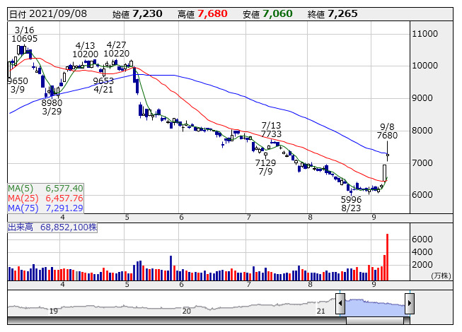<6594> 日電産 7007 ( 5) 13,205 -120 ( -0.9%)