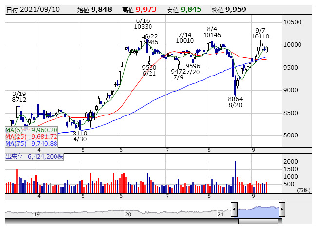 10日のNY市場は続落。ダウ平均は271.66ドル安の34,607.72ドル、ナスダックは132.75ポイント安の15,115.50で取引を終了した。押し目買いが強まり、上昇して寄り付いた。しかし、8月生産者物価指数(PPI)の引き続き大幅な伸びで、高インフレへの警戒感に売りに拍車がかかり下落に転じた。民主党が企業の自社株買いに対する課税案を検討しているなどの報道や2001年9月11日の同時多発テロから20周年を迎え地政学的リスクなどを懸念し、引けにかけて下げ幅を拡大。