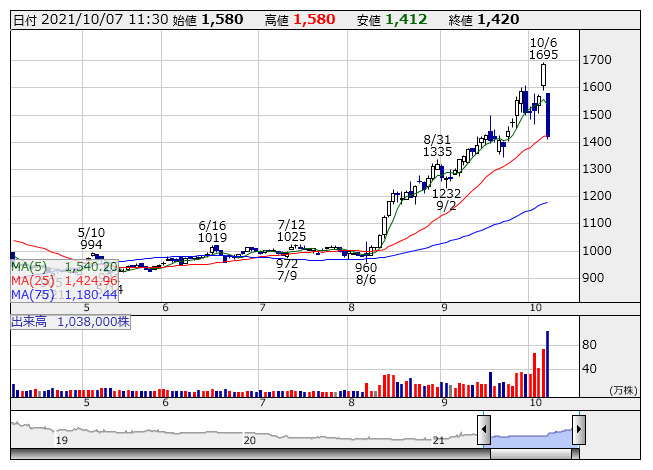 【材料】前場のランキング【値下がり率】 (10月7日)