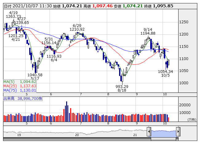 一方、海帆<3133>、パルマ<3461>、アクシス<4012>、ジィ・シィ企画<4073>、ユミルリンク<4372>など8銘柄が年初来安値を更新。ハイアス・アンド・カンパニー<6192>、ティーケーピー<3479>、シンメンテホールディングス<6086>、サイバー・バズ<7069>、ラキール<4074>は値下がり率上位に売られた。