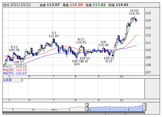 原油高や米長期金利の上昇などを背景にドル・円は2017年11月以来となる114円70銭まで買われたが、ドル高・円安の急速な進行については、一部で投機的な円売りが増えているとの見方や、秩序だったドル高ではないとの声も聞かれている。また、1ドル=114円台後半から115円付近では顧客筋などのドル売り・円買いが増える可能性があるとみられており、原油価格の反落や中国恒大集団の債務問題など、新たなドル売り材料が提供された場合、ドルの上値は重くなる可能性がある。