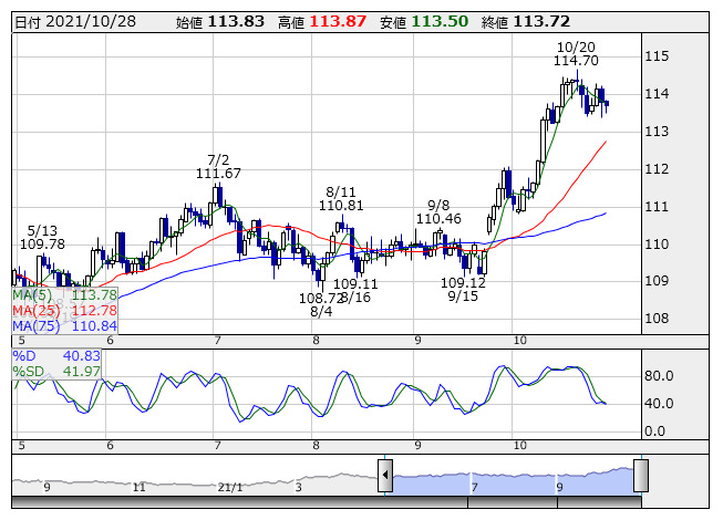 米ドル/円 <日足> Slowストキャス 「株探」多機能チャートより28日のニューヨーク外為市場でドル・円は、113円72銭まで上昇後、113円26銭まで下落し、113円58銭で引けた。この日発表された7-9月期国内総生産(GDP)の成長は予想以上に前四半期から鈍化。さらに、9月中古住宅販売成約指数は予想外のマイナスに落ち込んだため、景気回復減速懸念にドル売りが優勢となった。その後、7年債入札の低調な結果を受けた長期金利上昇に伴い、ドル売りは後退した。