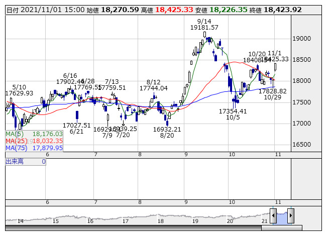 2021年11月01日15時17分 【市況】JPX日経400先物:1日清算値=435ポイント高、1万8385ポイント JPX日経400 <日足> 「株探」多機能チャートより 1日15時15分、JPX日経インデックス400先物期近2021年12月限は前週末清算値比435ポイント高の1万8385ポイントで取引を終えた。出来高は1万1325枚だった。この日のJPX日経インデックス400の現物終値1万8423.92ポイントに対しては38.92ポイント安。 株探ニュース