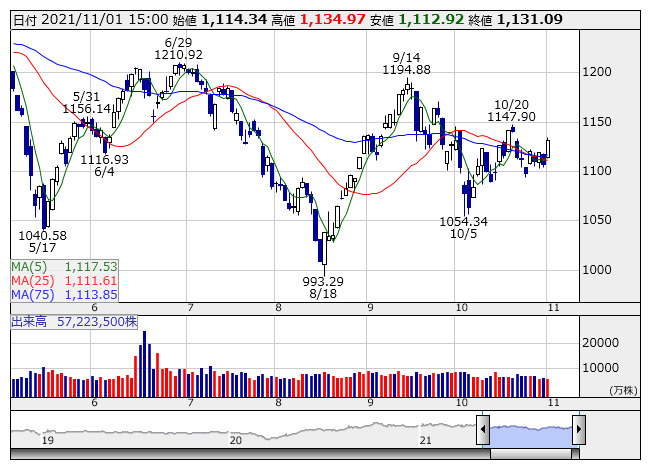 2021年11月01日15時17分 【市況】マザーズ先物:1日清算値=29ポイント高、1130ポイント マザーズ指数 <日足> 「株探」多機能チャートより 1日15時15分、東証マザーズ指数先物期近2021年12月限は前週末清算値比29ポイント高の1130ポイントで取引を終えた。出来高は2994枚だった。この日の東証マザーズ指数の現物終値1131.09ポイントに対しては1.09ポイント安。 株探ニュース