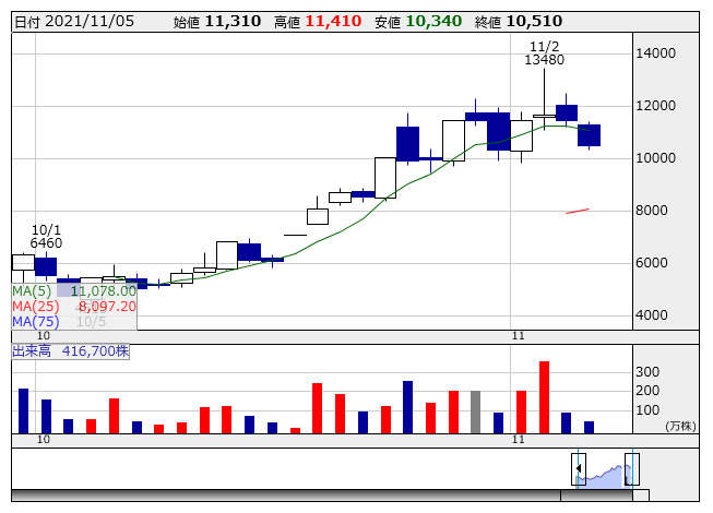 アスタリスク <日足> 「株探」多機能チャートより(東証上場 4048 銘柄対象[ETF、REIT含む])