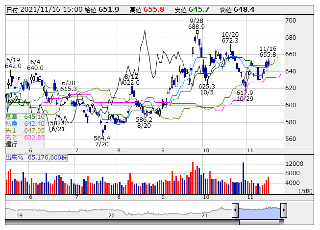<8306> 三菱UFJ 648.4 +3.2 ( +0.5%)