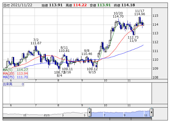 ドル・円は114円08銭から114円89銭まで上昇し17日の高値114円97銭を試す展開となった。