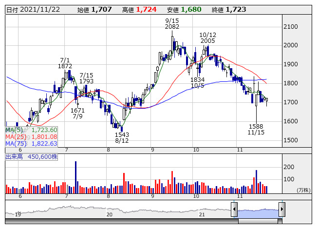 <2158> フロンテオ 17357 ( 37) 4,595 +155 ( +3.5%)