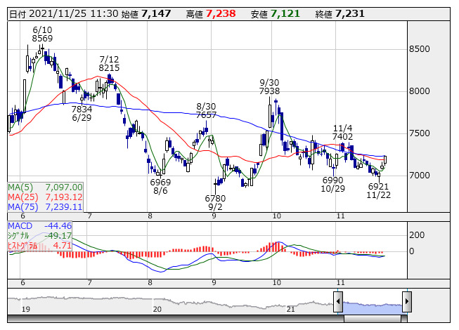 <6965> 浜松ホトニクス 7100 -60 ( -0.8%) 142.3