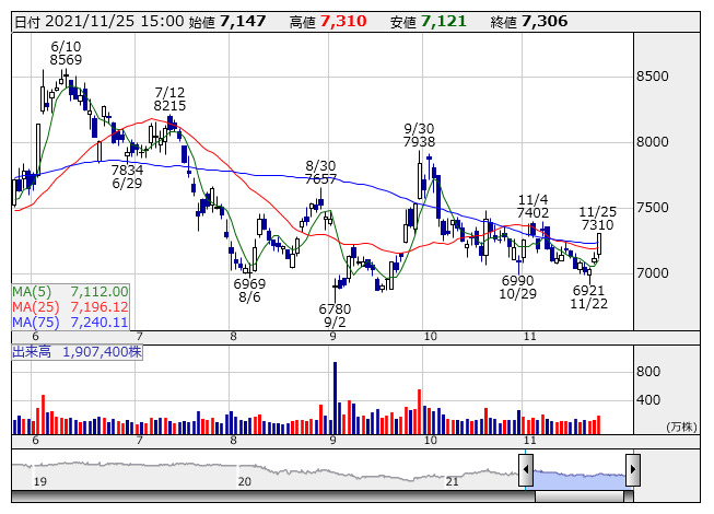 <7089> フォースタートアップス 5400 -430 ( -7.4%)