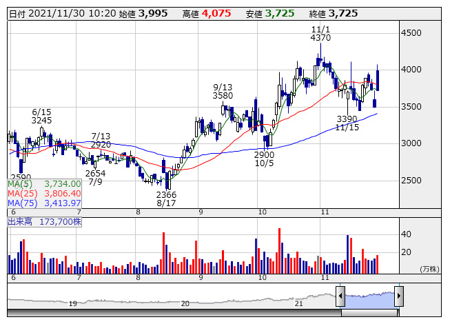 ライトアップ <日足> 「株探」多機能チャートより今回の連携により、ドコモが12月1日に開設する「ビジネスdXストア」のサービスラインアップに、ライトアップの助成金・補助金申請支援サービス「JSaaS」が採用され、「dX助成金申請」という名称で提供されるという。なお、現時点で22年3月期業績に与える影響は軽微と予想している。