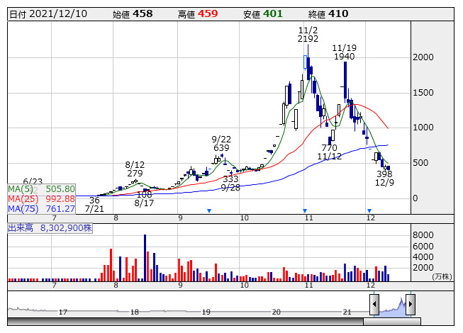 20. <3121> マーチャント 東証2 -12.6 463 ビンテージカーのNFT化に関する取り組みを開始