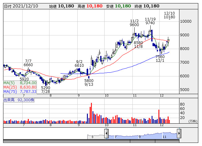 <6966> 三井ハイテク 東1 22/ 1 11700 13500 15.4 12/10