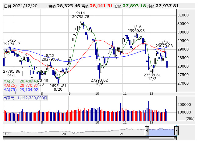 日経平均 <日足> 「株探」多機能チャートより[強弱材料]