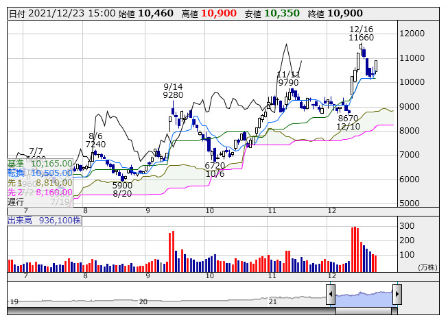 <6966> 三井ハイテック 10900 +550 ( +5.3%) 4