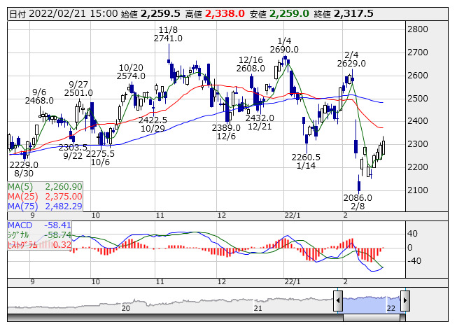 <3132> マクニカ富士 2633 +6 ( +0.2%) 12.6