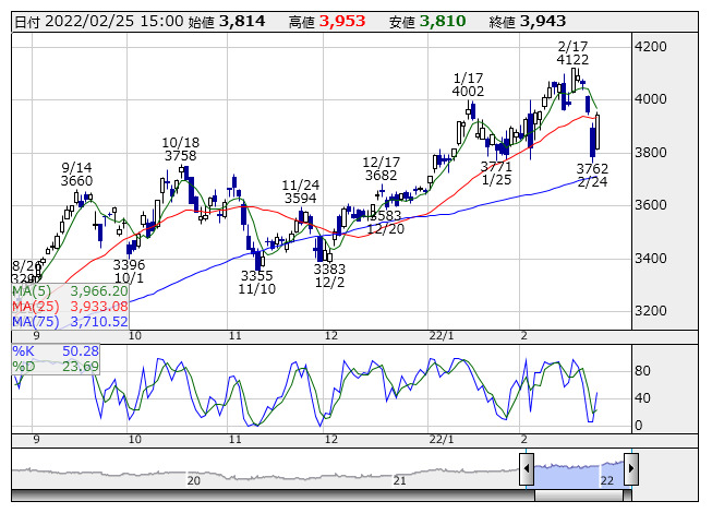 銘柄名 株価 前日比 (比率) 25日移動平均