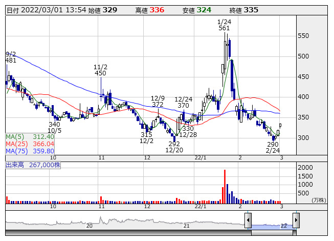 クシム <日足> 「株探」多機能チャートよりクシム<2345>は28日、連結子会社のイーフロンティアは、FISCO Decentralized Application Platformが2月21日に運営を開始した「Zaif NFT Marketplace」にて、ソフトウェアライセンスのNFTでの販売を2022年4月下旬から開始することを発表した。