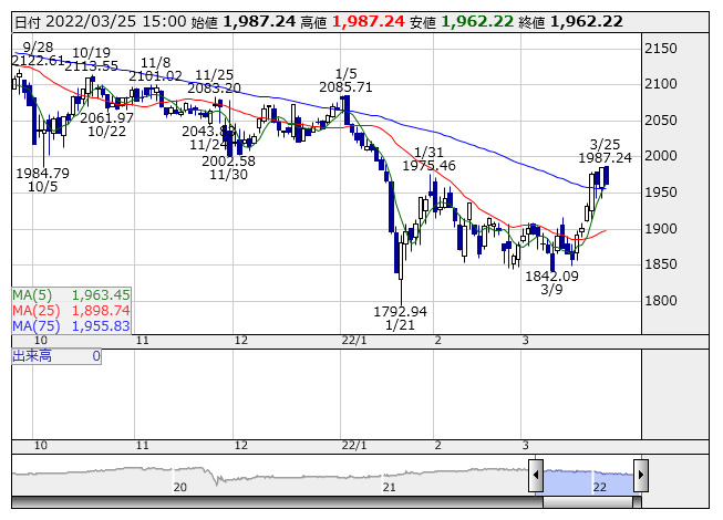 2022年03月25日15時18分 【市況】東証REIT指数先物:25日清算値=18ポイント安、1952ポイント REIT指数 <日足> 「株探」多機能チャートより 25日15時15分、東証REIT指数先物期近2022年6月限は前日清算値比18ポイント安の1952ポイントで取引を終えた。出来高は201枚だった。この日の東証REIT指数の現物終値1962.22ポイントに対しては10.22ポイント安。 株探ニュース
