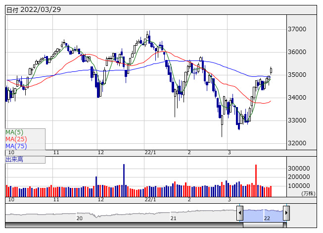 ・NYダウは上昇(35294.19、+338.30)