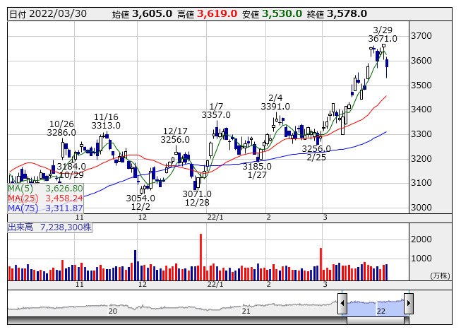 <5108> ブリヂストン 13297 ( 28) 4,601 -140 ( -3.0%)