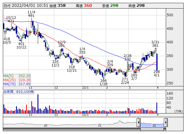 【材料】前場のランキング【値下がり率】 (4月1日)