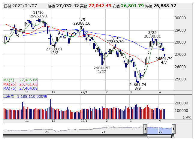 27480.00円 一目均衡表・先行スパン2(雲上限)