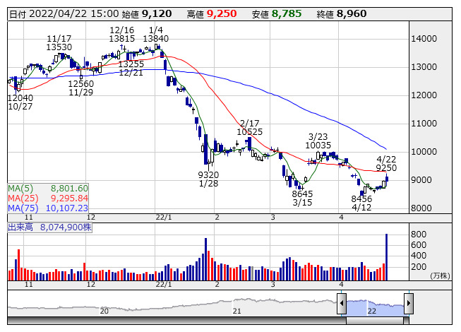 <6594> 日本電産 8960 -10 ( -0.1%)