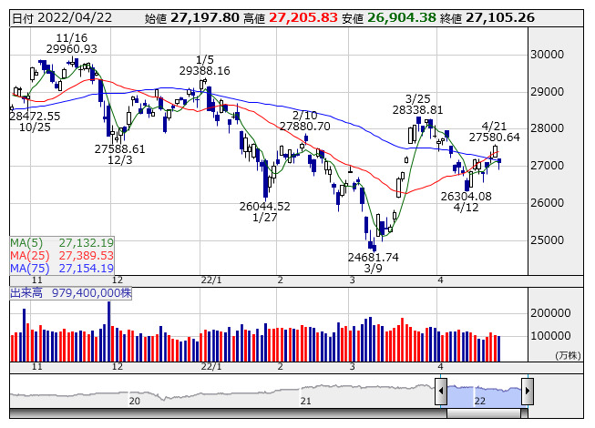 【市況】日経225先物:23日夜間取引終値=390円安、2万6710円