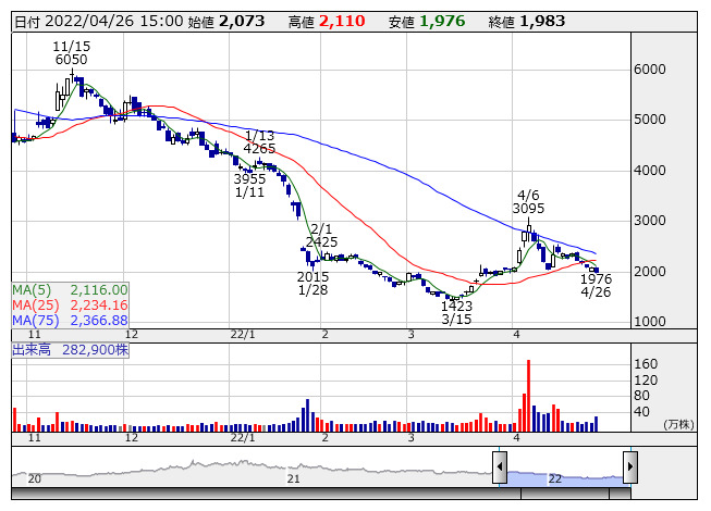 マクアケ <日足> 「株探」多機能チャートよりコロナ禍で「Makuake」利用のニーズが急拡大したことで応援購入総額が大きく伸びた一方、人員数やオペレーション体制、プラットフォーム規模に合わせた新機能開発などに課題が現れていることから、上期は積極的な採用強化やオペレーション体制の改善、新機能の開発に注力したが、これらの実現に計画より時間を要し、上期業績が計画を下回ったことが要因としている。
