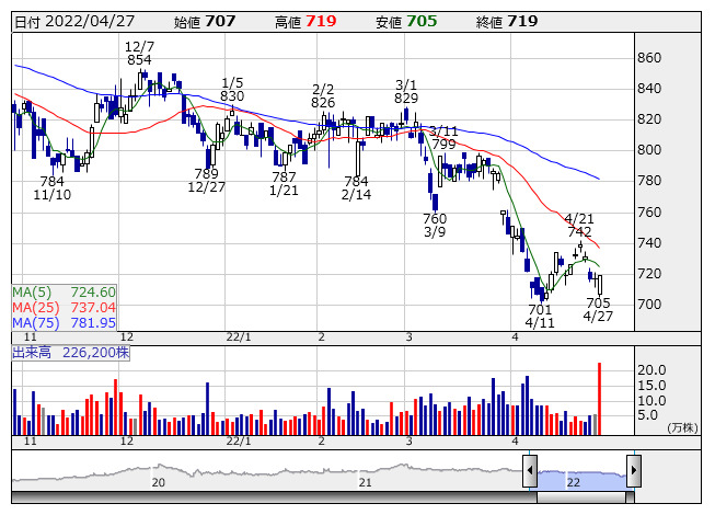 発行済み株式数(自社株を除く)の5.78%にあたる50万株(金額で3億円)を上限に自社株買いを実施する。買い付け期間は4月27日から23年4月21日まで。