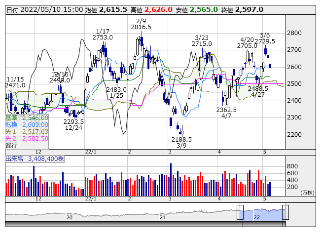<8001> 伊藤忠商事 3693 -184 ( -4.7%) 5