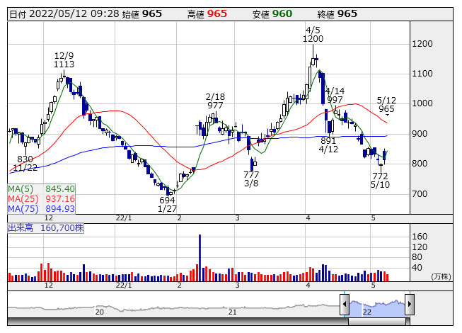 ヨネックス <日足> 「株探」多機能チャートより12日の東証スタンダード市場で、ヨネックスがストップ高。11日取引終了後に発表した22年3月期の連結営業利益は、前の期比6.5倍の67億3800万円と最高益を更新したほか、23年3月期の同利益も前期比14.3%増の77億円と連続増益の見通しを明らかにしたことが好感された。バドミントン事業で成長を牽引している中国は、一部地域でのロックダウンの影響が第2四半期に見込まれるものの、ロックダウン解除後は堅調に推移する見通しとしている。バドミントン及びテニス事業が順調に成長することが期待されている。