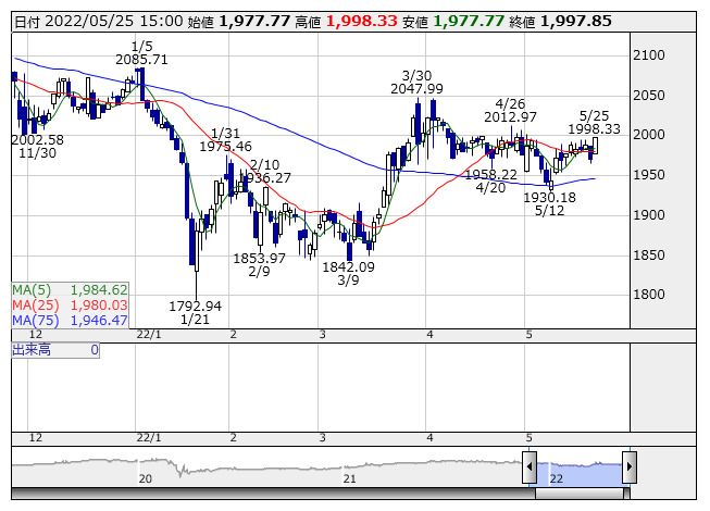 2022年05月25日15時18分 【市況】東証REIT指数先物:25日清算値=18.5ポイント高、1980.5ポイント REIT指数 <日足> 「株探」多機能チャートより 25日15時15分、東証REIT指数先物期近2022年6月限は前日清算値比18.5ポイント高の1980.5ポイントで取引を終えた。出来高は117枚だった。この日の東証REIT指数の現物終値1997.85ポイントに対しては17.35ポイント安。 株探ニュース