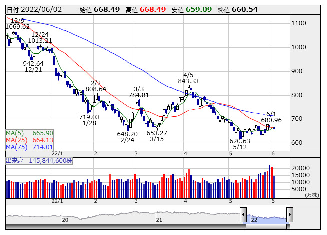 671.80ポイント 5日移動平均