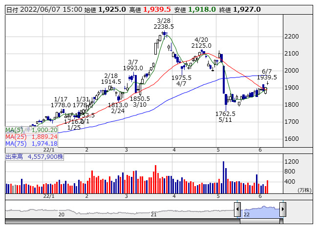 <8053> 住友商事 1927 +23 ( +1.2%) 1900.2 1889.2