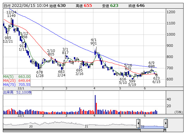 同時に発表した第3四半期累計(21年8月~22年4月)決算は、売上高16億3300万円(前年同期比38.8%増)、営業利益1億4600万円(同35.6%減)、最終利益7300万円(同47.2%減)だった。