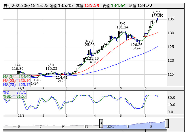 米ドル/円 <日足> Slowストキャス 「株探」多機能チャートより15日午後の東京市場でドル・円は本日安値を更新し、一時134円64銭まで値を下げた。欧州中銀(ECB)は本日、臨時の理事会を開催し国債市場の下落について協議する。それを受け思惑的なユーロ買いが強まり、ユーロ・ドルの上昇がドル・円を下押ししたようだ。