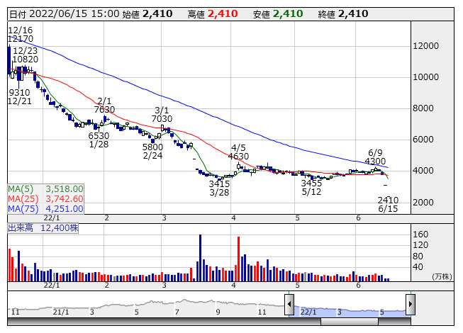 【材料】本日のランキング【値下がり率】 (6月15日)