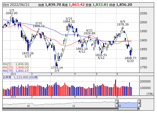 1845.90ポイント 5日移動平均