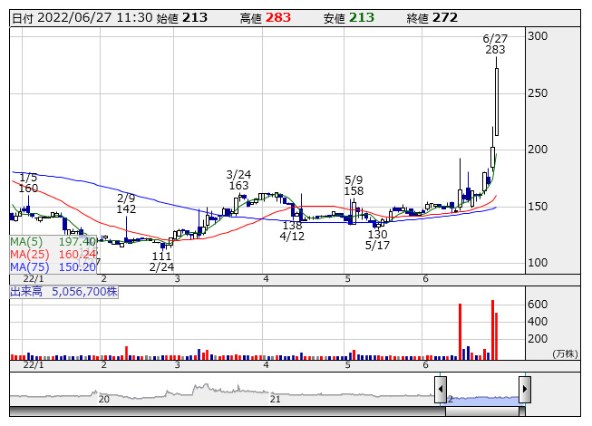 【材料】前場のランキング【寄付からの値上がり率】 (6月27日)