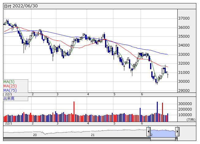 【市況】米国市場データ NYダウは253ドル安と反落 (6月30日)
