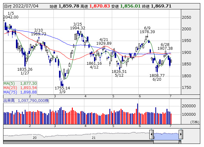 【市況】TOPIX先物テクニカルポイント(5日夜間取引終了時点)