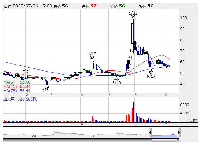 メディネット <日足> 「株探」多機能チャートより■事業活動の進捗と今後の取り組み