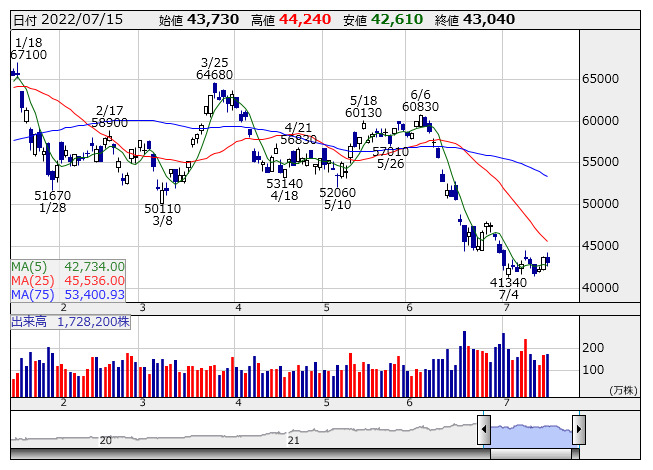 <7974> 任天堂 34701 ( 5) 61,990 0 ( 0.0%)