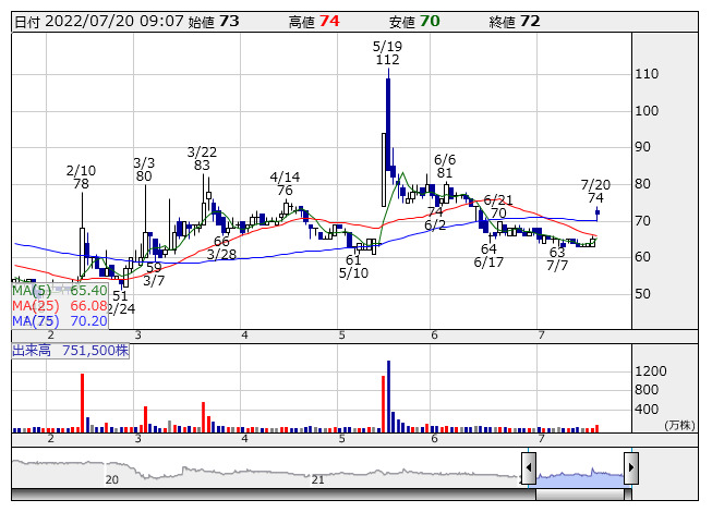 19日に発表した「日エンターと共同事業契約」が買い材料。