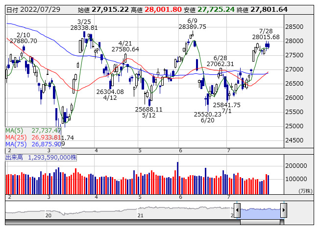 【市況】日経225先物:29日22時=90円高、2万7840円