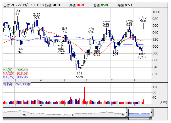 ゼビオHD <日足> 「株探」多機能チャートよりフィッティング販売による接客サービス強化などが奏功しゴルフ部門が好調に推移したほか、人流の回復に伴いタウンシューズやウォーキングシューズも前年を上回った。また、カジュアル用途のアウトドアブランドウェアも伸長し、これらが業績を押し上げた。